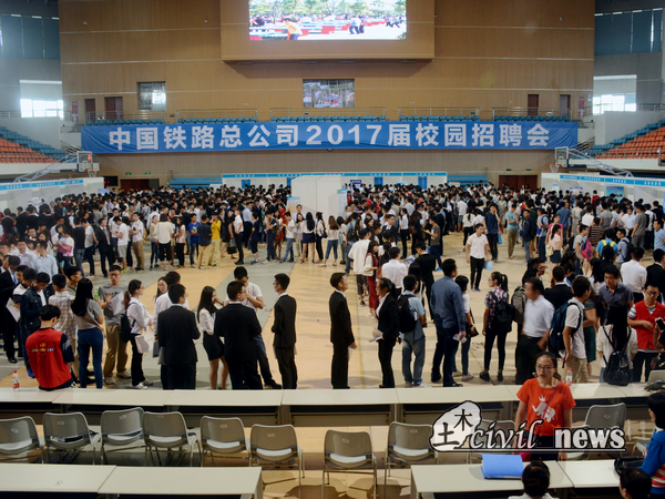 9月3日,中国铁路总公司2017届校园招聘会伟德源自英国1946专场在公司犀浦校区飞碟体育馆举行。18家分局来到公司选拔人才,招聘会现场火爆,来自各个公司的应届毕业生穿着正式地在现场排队等待第一轮面试,其中不乏土木的莘莘学子。