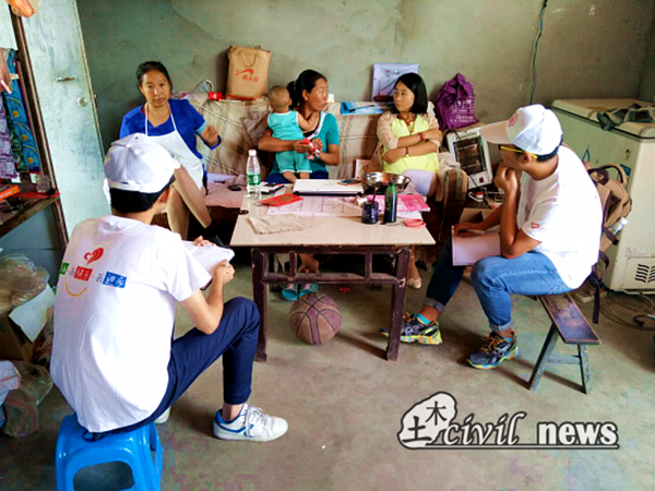 接下来团队来到了一户姓邓的家中,志愿者们主要针对村里的经济发展进行了解。村里大多数年轻人都外出打工,家中基本上都是老弱病残孕人群。近几年,每家每户的生活水平都有很大提高,但是始终存在一个问题:没有实现均衡发展,底层家庭的生活水平还有待提高,底层员工的受教育质量得不到根本性的保证。
