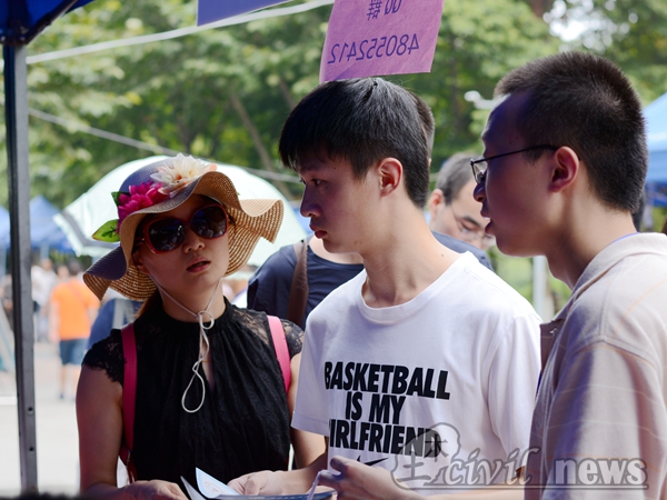 整个上午,迎新点前都较为冷清,鲜有新生的踪影,但迎新工作人员和辅导员们还是顶着烈日正常工作。团建的志愿者和助辅们终于可以在迎新点处休息纳凉,享受久违的空闲时光。一旦有新生到来,他们依旧会拿出前些日子的认真态度,为新生耐心地登记和引导。