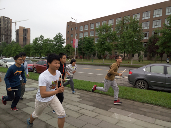 在进行了简单的流程宣讲和动员后,工作人员将第二棒、第三棒、第四棒分别带至西门、南门和东门三个交接地点。之后,随着起点裁判的一声令下,激动人心的比赛正式开始。