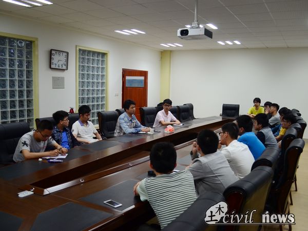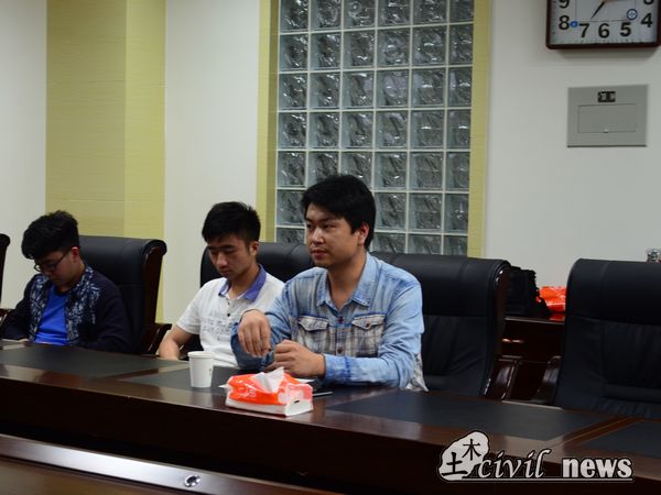 在简短的自我介绍过后,王聪学长首先为同学们介绍了毕业之后进入施工单位的工作环境和晋升条件。他说,进入施工单位后,工作环境艰苦,成家也比较困难,但是相对于其他单位来说,施工单位晋升相对容易一些。接着学长谈到了设计院的工作,也是在座同学们最为关心的问题。学长把设计院大致分为了大型设计院与小型设计院分别为同学们讲解。学长首先谈到了大型设计院,指出了大型设计院最大的弊端:流水线作业,成长慢,除此之外,现在的很多大型设计院只招收研究生以上学历的毕业生,这也是本科毕业生必须面对的问题。但是在大型设计院收入有保障,也能积攒一些人脉。聊完大型设计院后,学长开始给同学们介绍了小型设计院的工作环境。他说,在小型设计院工作成长比较快,允许犯错,能够学习到很多东西,同时也要具备应急能力和接受新鲜事物的能力。在小型设计院工作还可以自己接一些私活,增加收入,但是作息时间非常不规律,加班已经成为生活的常态。讲完设计院,学长提到,不管进入什么设计院,心态一定要调整好,做错事了不气馁,有成绩了不骄傲,才会有很多收获。