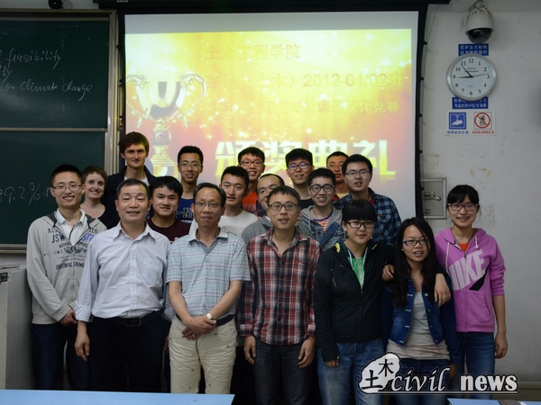 5月13日,2012级茅以升公司土木1、2班关于《环境工程基础》课程设计竞赛的颁奖典礼在X2427隆重举行。参加本次颁奖典礼的嘉宾有工学博士、博士生导师杨顺生教授,本科办创新办公室主任梁老师以及资助本次竞赛的企业代表吴高工。同时,跟随杨老师而来的两位德国职工也参加了此次颁奖典礼。