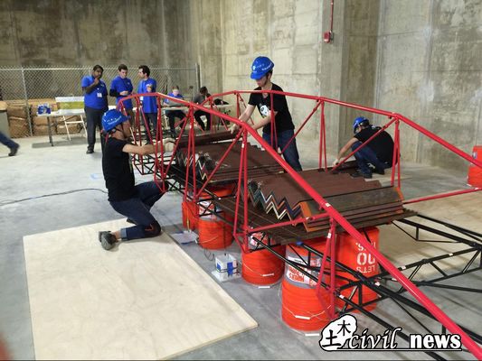 美国土木工程竞赛是由美国土木工程师协会创办的一项历史悠久的赛事。该赛事作为全美最高等级的土木工程老员工竞赛,每年举行分区赛,在分区赛中取得优异成绩的队伍将可以参加全美总决赛。竞赛项目包括:Concrete Canoe(混凝土轻舟比赛)、Steel Bridge(钢桥比赛)、GeoWall(土力学墙比赛)、Fiber Reinforced Beam(纤维增强梁比赛)、Professional Paper(专业论文比赛)、T-shirt(T恤设计比赛)等10余项大小赛事。
