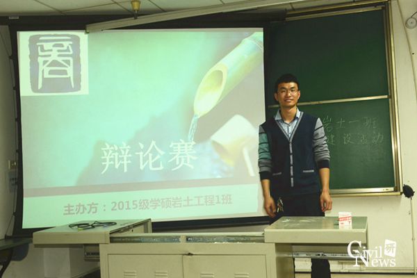 4月22日晚,15级学硕岩土一班在逸夫馆4305A举办了一次主题为“求实”的辩论赛,辩题为“论读万卷书与行万里路谁更重要”。比赛开始之前,主持人李永奎先向大家介绍了本次活动的主题,然后详细说明了比赛规则。正方观点是“读万卷书更重要”,反方观点是“行万里路更重要”。