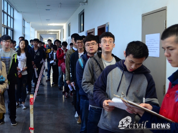 此次竞赛分为了建筑工程,桥梁承重,桥梁景观和造型,岩土工程,铁道工程,道路工程共五个项目。作为打响土木科技月的第一场战争,此次比赛被寄予了厚望,报名人数火爆。在土木科创中心的志愿者们有条不紊的指挥下,同学们排为两列进行了对自己报名事宜的填写。而志愿者们引导着参赛者到指定地点填写信息并将信息表交至了信息录入区。