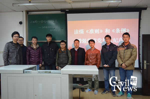 12月13号下午两点,在逸夫馆4320,14级专硕桥梁2班全体党员在党支书朱元奇的带领下,一起学习《中国共产党廉洁自律准则》和《中国共产党纪律处分条例》。并新颁布的《准则》,《条例》进行了交流探讨。