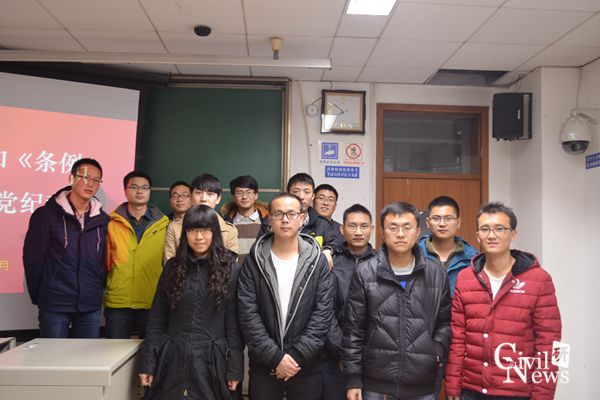 2015年12月11日晚上七点半,在4305A举行了学硕铁道2班和专硕铁道1班的党支部生活会议。会议由学硕铁道2班的党支书石培泽主持,会议的主要内容是读懂《准则》和《条例》,增强党章党规党纪意识。