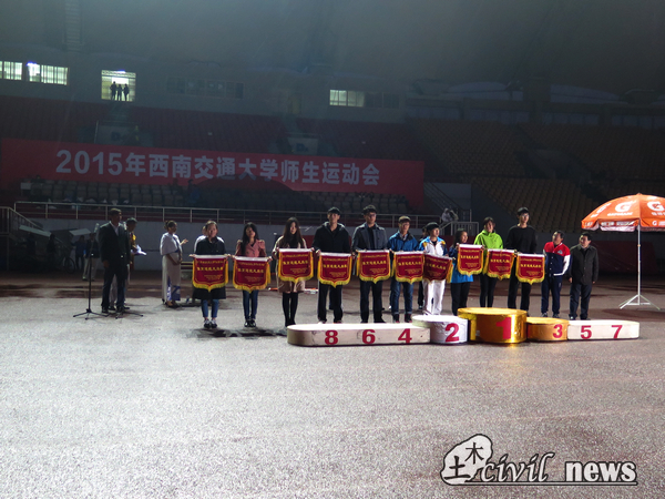 之后的体育道德风尚团体奖获奖团队有交运公司、地环公司、信息公司、峨眉校区、外语公司、公共管理公司、经管公司、数学公司、人文公司、建筑公司,由校团委书记朱剑松颁奖,同时合影留念。教师甲组和乙组获奖名单仍需统计,计划在明天公布。