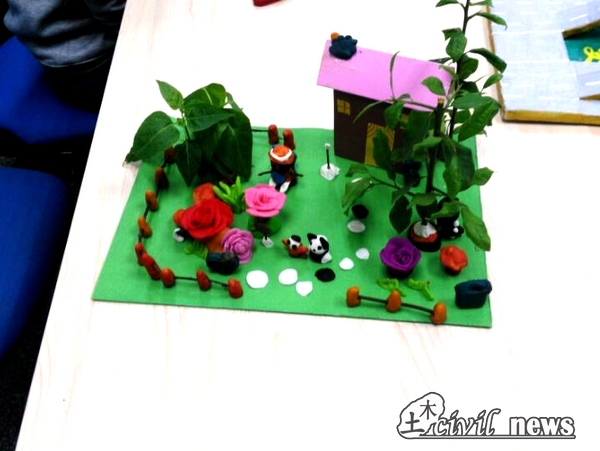 18日下午两点,土木青协的成员们准时到达校车站集合,带着同学们的手工、寄语和图画,还有学长学姐们做的模型,前往SOS儿童村。刚刚进入儿童村,志愿者们就被孩子们热情地团团围住,现场处处充满着温馨的感觉。进入手工室,志愿者们向孩子们和老师简单介绍了当天带来的礼物,和他们分享了同学们写的寄语,并简单介绍了关于我们。小朋友们也为青协的大哥哥大姐姐们准备了一份礼物,这是一个用泥塑做的小院子,院子里有可爱的大熊猫,绽开的鲜花,漂亮且精致。最后,志愿者们教孩子们做了小手工,小朋友们也教志愿者做了折纸。大家在一起玩得非常开心,志愿者与小朋友们的心在那一刻联系在了一起。