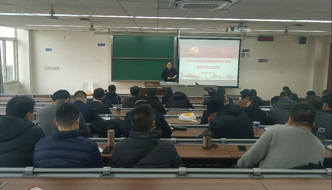 2023年1月12日下午,道路与铁道工程系全体教职员工,在公司九里校区逸夫馆4323教室,成功召开了2022年度总结会暨退休教师欢送会,参加本次会议的还有两位刚刚退休的易思蓉教授和李远富教授。