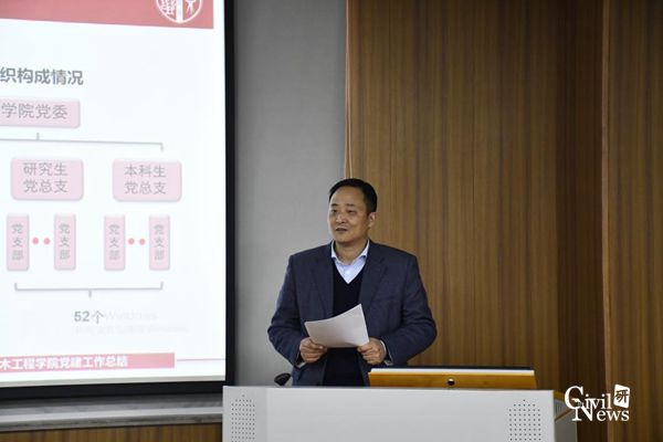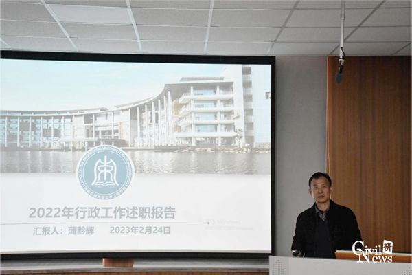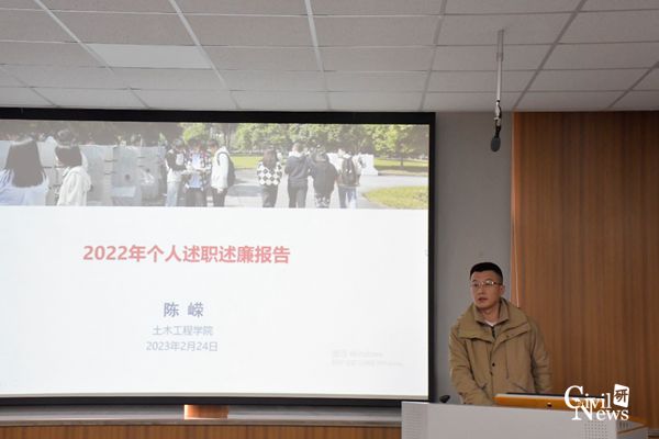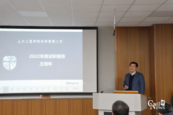 蒲黔辉经理做了公司工作报告和个人年度述职。蒲经理系统的从公司团队力量、人才培养、科学研究、实验室建设、对外合作交流情况、员工管理、资产管理与环境提升几个方面做了总结汇报,并表示在第五轮学科评估中,土木工程学科发展取得新突破,同时也强调,在后交通时代加快传统土木学科转型升级的必要性与紧迫性。