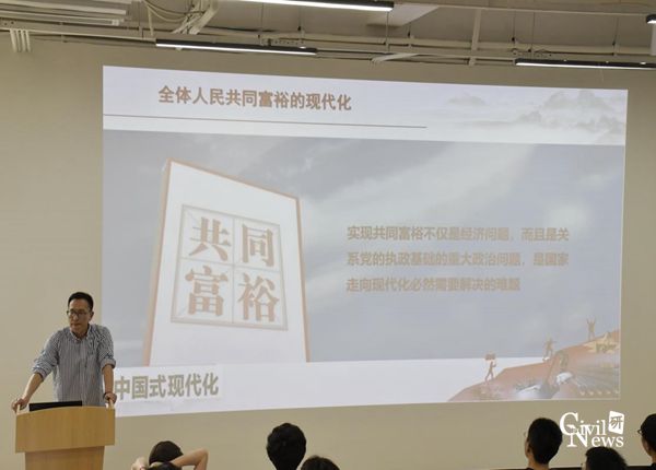 紧接着石莹老师循着二十大精神的思路,从“接续奋斗,追求千年梦想”、“立足国情,开辟全新道路”、“凝心聚力,推进复兴伟业”这三个方面向各位积极分予以及发展对象们展示了中国共产党带领中国人民创造性地探索、发展、开辟中国式现代化道路的漫漫历程。从1840年鸦片战争导致的半殖民半封建社会开始到新中国的成立后新民主主义社会再到后来的现代化建设以至如今的中国式现代化道路,这些道路的探索都是先辈们用鲜血所拼搏出来的。石莹老师在最后总结道:“这个世界上其实并没有一条放之四海而皆准的现代化标准,只要把握正确的方向,驰而不息,走好自己的路,就一定能实现中国的现代化。”