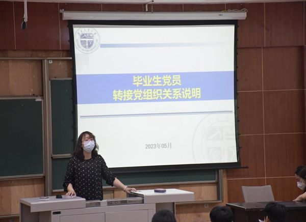 最后,由喻夏老师进行了2023年毕业生党员党组织关系转接的培训会,就党组织关系转接的基本原则向全体毕业生进行了详细的介绍与说明。
