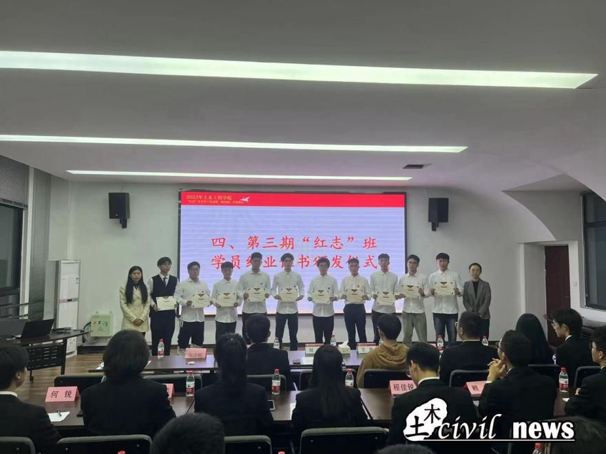 “红志”班师生代表发言结束后,刘萍老师为第三期红志班学员颁发结业证书。