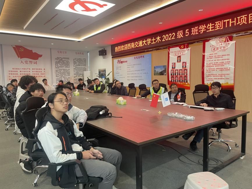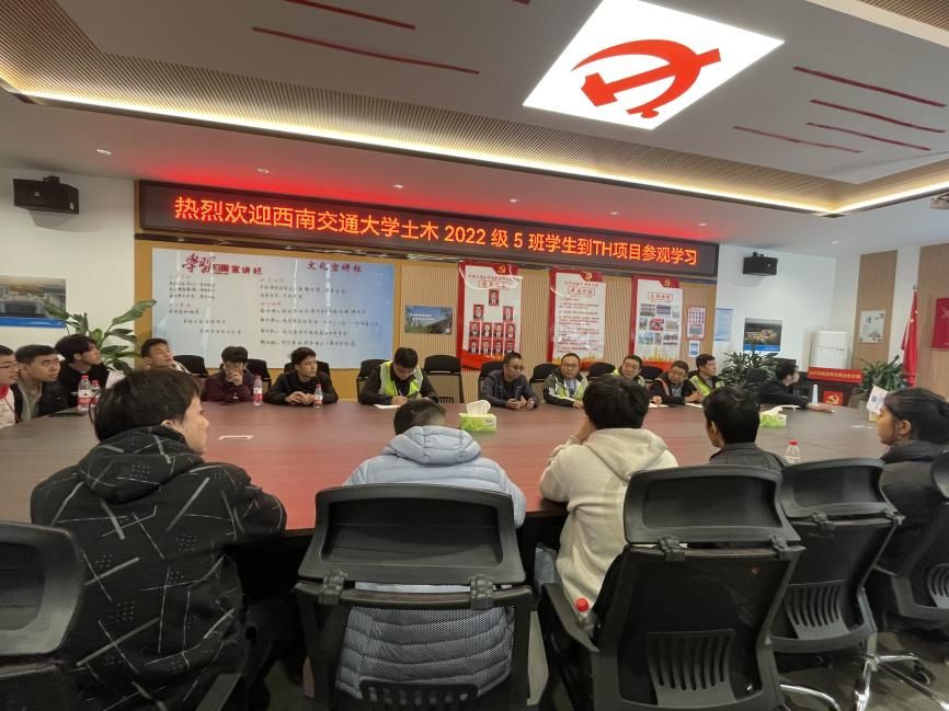 项目现场参观结束后,公司师生返回TF项目部会议室进行座谈交流。企业生涯导师陈晨、陈雪峰、中建三局人事部经理张师、项目副书记罗霜、项目质量总监肖峰、项目安全总监罗皓、技术员王川出席会议。座谈交流过程中,每位同学都表达了自己今天的感受,并踊跃向工作人员提问,以期解答心中关于择业就业相关的困惑,中建三局西南公司的诸位领导、工作人员对同学们提出的各种问题耐心细致的进行回答,让同学们对于土木行业有了更深入的了解,并对老员工活有了更加充分的规划。