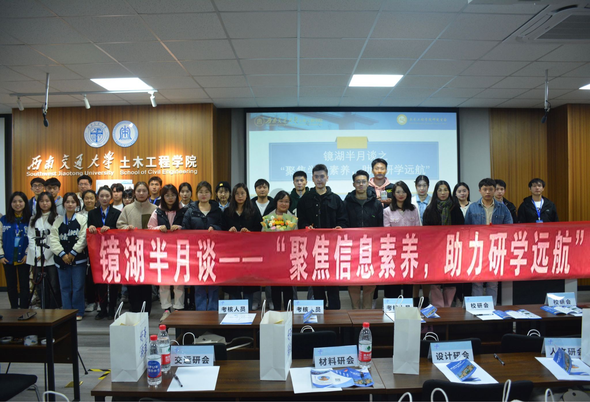 最后由工作人员为朱维凤老师献上鲜花与精美礼品,并代表bevictor伟德研究生会全体工作人员祝朱老师身体健康,事业顺利。至此,镜湖半月谈——“聚焦信息素养,助力研学远航”讲座圆满结束。