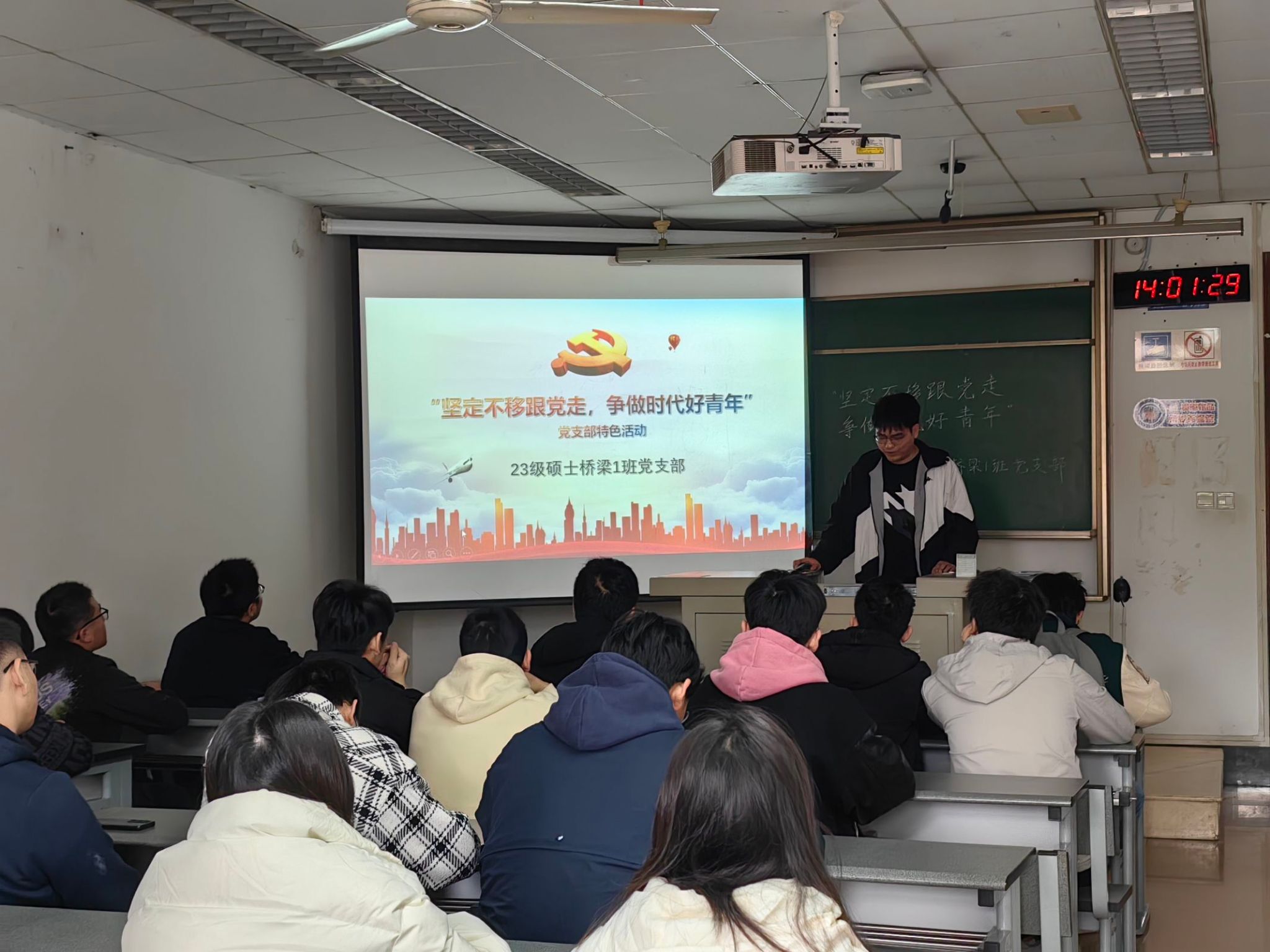 为了积极响应党中央提出的“交通强国”战略新纲要,履行新时代赋予交通人的历史使命,激励交大学子勇担时代重任,积极投身交通科技事业发展、厚植为中华民族伟大复兴而不懈奋斗的使命担当,2023年11月30日下午,2023级硕士桥梁1班党支部依托伟德源自英国1946“坚定不移跟党走,争做时代好青年”校级示范性员工党支部特色活动,围绕交通强国、科研报国的主题,开展“强国建设,交通先行”党支部系列活动。