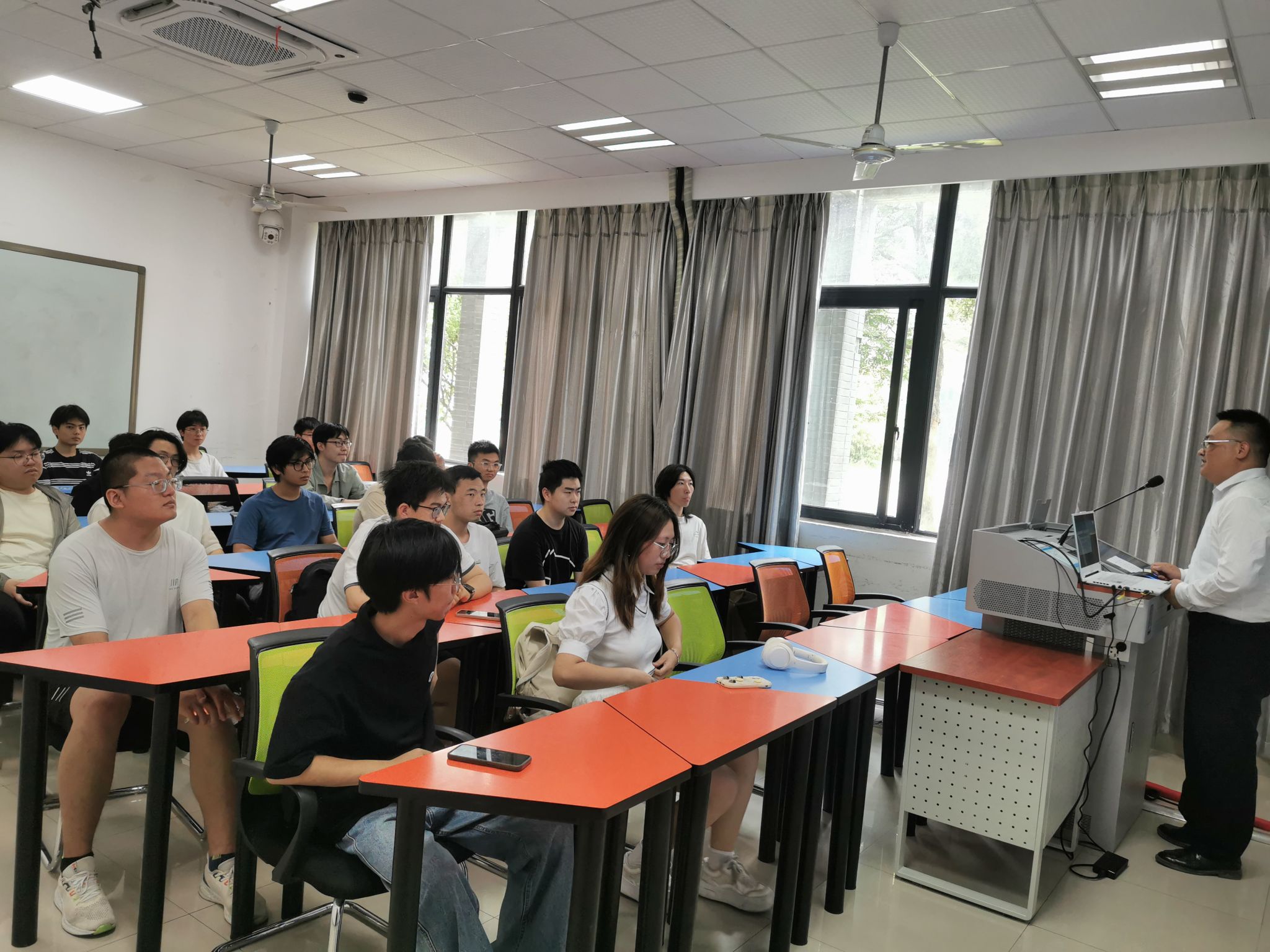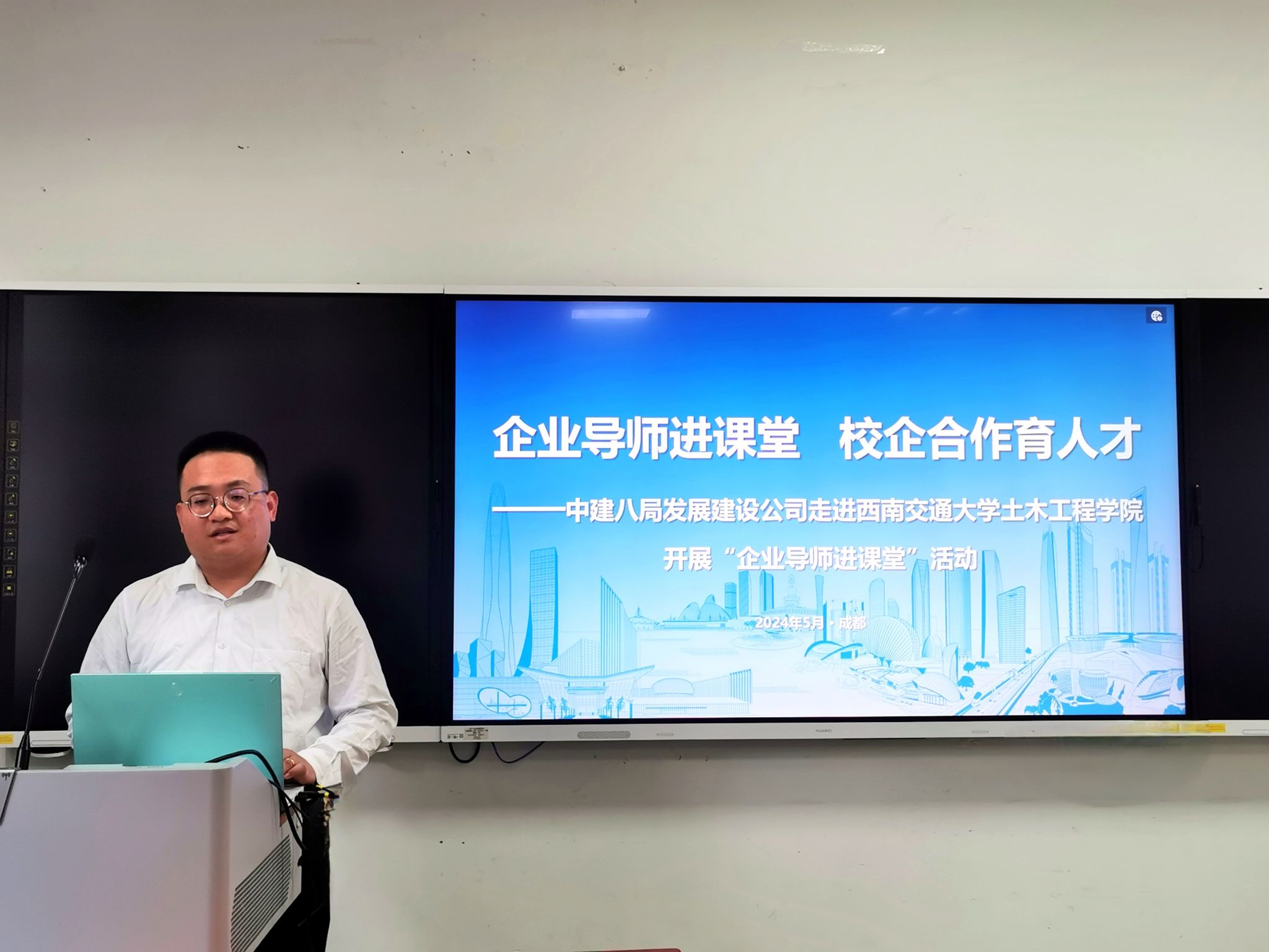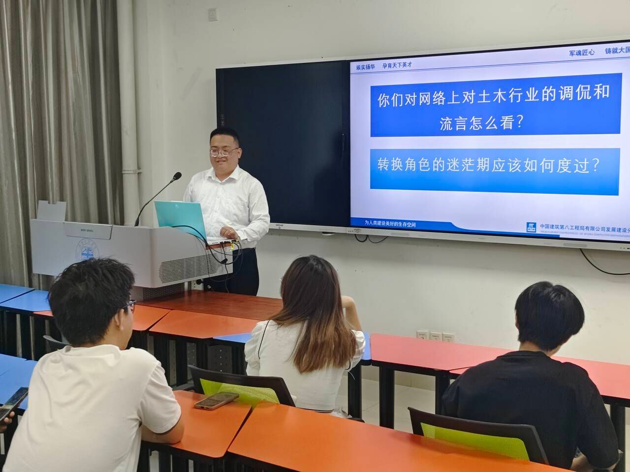 随后,王森基导师为同学们介绍了中建八局发展建设公司的发展历程、综合实力、社会责任以及企业文化等,并以“找到适合自己的方向,不负韶华”为主题,分享自己曾在交大学习的经历和职场心得。他鼓励同学们要重视专业课程学习,努力提升自身的核心竞争力,大学期间要多参与实习和了解企业信息,为未来的职业生涯做好规划、奠定基础。授课过程中,同学们全神贯注,积极互动,现场氛围活跃。