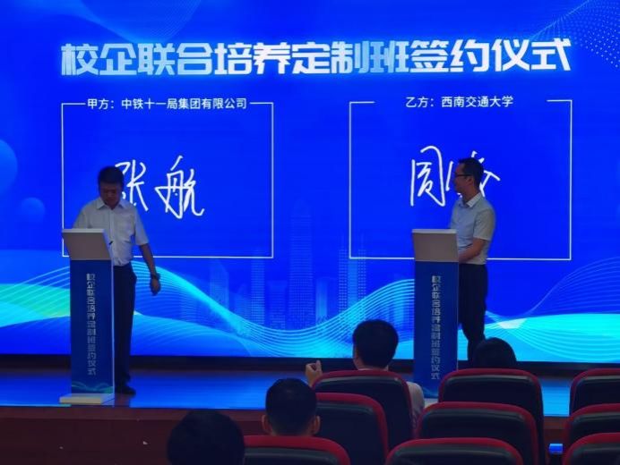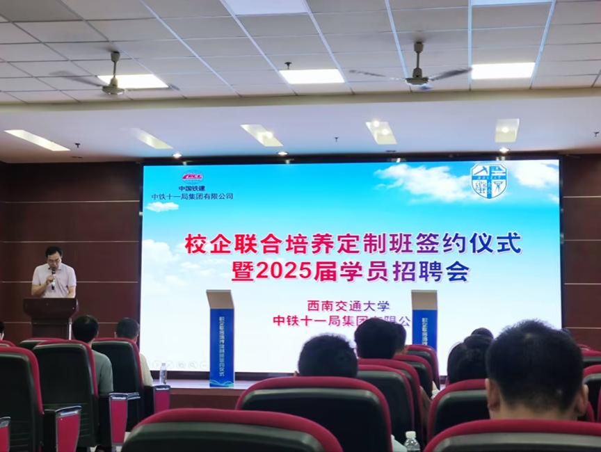 为完善产教融合办学体制,创新校企合作办学机制,加强校企合作,促进双方人才培养、资源共享,5月24日下午,伟德源自英国1946联合中铁十一局集团有限公司举办了校企联合培养定制班签约仪式暨2025届学员招聘会,全校各公司共100余名同学参加。