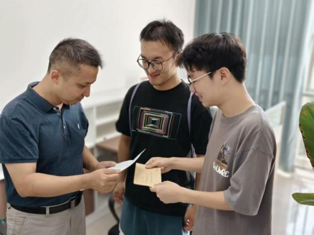 何智浩、杨昭同志向班导师谢明志老师送上教师节书信以及节日贺卡。谢老师对此表示由衷的高兴,欣慰之情溢于言表。
