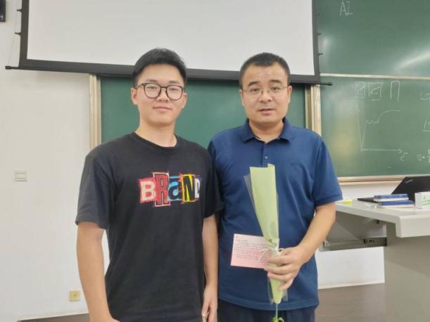 张迅老师收到了道桥2021-02班全体同学的鲜花与贺卡,向同学们表示感谢。他尽职尽责,下课后在教室中做了良久的收尾工作后才离开。