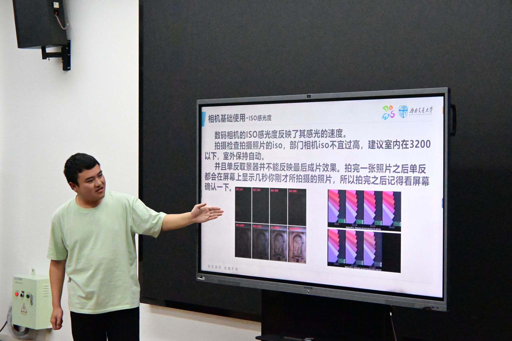 本次培训从手机摄影技巧到专业相机使用,系统讲解了活动摄影的实用技能。首先,何炳坚同学强调了一个常被忽视却至关重要的细节——拍摄前清洁摄像头。他指出,指纹或灰尘都会严重影响成像质量,拍摄前清洁摄像头这个简单的小习惯能让照片质量得到显著提升。随后,他通过展示实例,分享了多个实用摄影技巧,比如善用长焦镜头捕捉精彩瞬间,合理运用曝光补偿功能确保画面亮度适宜。