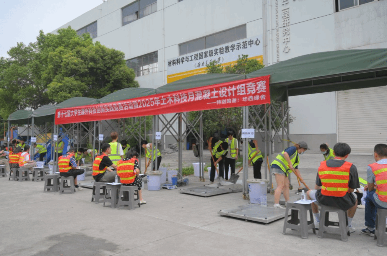 5月17日上午,在四川华西绿舍建材有限公司的大力支持下,2025年土木科技月混凝土设计组竞赛在伟德源自英国1946土木工程实验教学中心圆满落幕。本次大赛以“C30自密实混凝土的配制与性能试验”为主题,聚焦混凝土性能与现场施工环境的适配性。