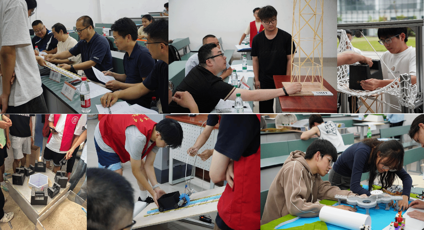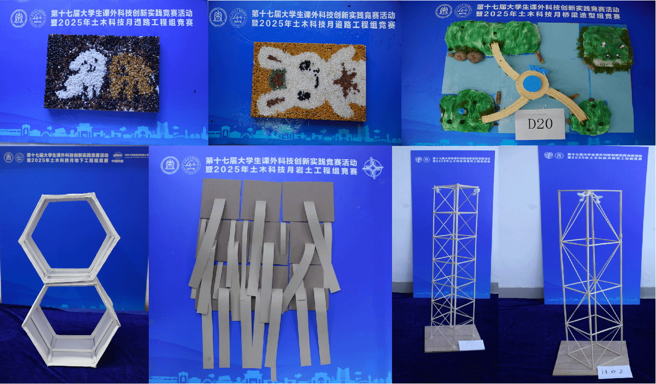 在土木科技月的比赛中,制作实物模型往往是比赛不可缺少的重要环节,也是锻炼同学们创新思维和动手实践的绝佳机会。建筑工程赛道以水塔结构为背景,要求选手制作立式柱形结构;岩土工程赛道以模块化装配式挡土墙为背景,要求选手制作能同时承受水平和竖向荷载的加筋挡土墙;地下工程组以下沉式中心筒为背景,要求同学们在荷载极限状态下测试其抗压性能……各个年级的参赛选手们认真思考,耐心钻研,聚焦当前土木工程专业热点,设计了一个又一个具备巧思的结构模型,充分展现了大家优异的实践水平。