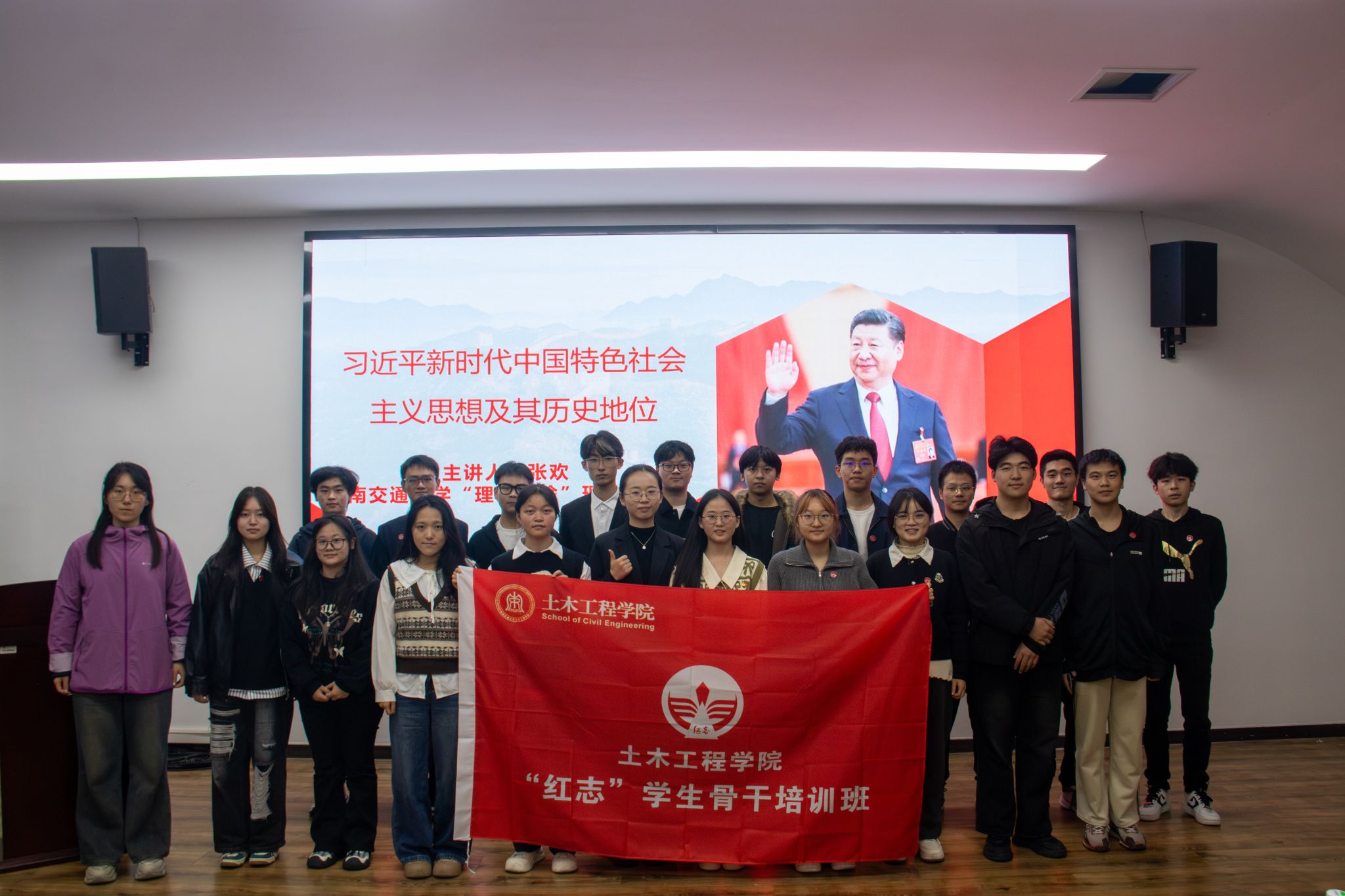 为深入学习贯彻习近平新时代中国特色社会主义思想,贯彻落实党的二十大精神,引领青年学子坚定理想信念,传承红色基因,2025年10月30日晚,bevictor伟德“红志”员工骨干培训班(第六期)有幸邀请到伟德源自英国1946“理响红途”理论宣讲团成员张欢老师,在X4407教室开展“习近平新时代中国特色社会主义思想及其历史地位”的专题学习。