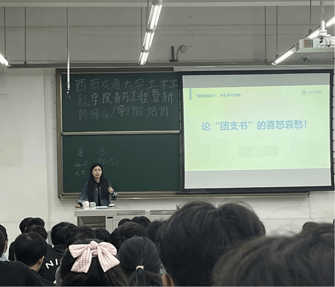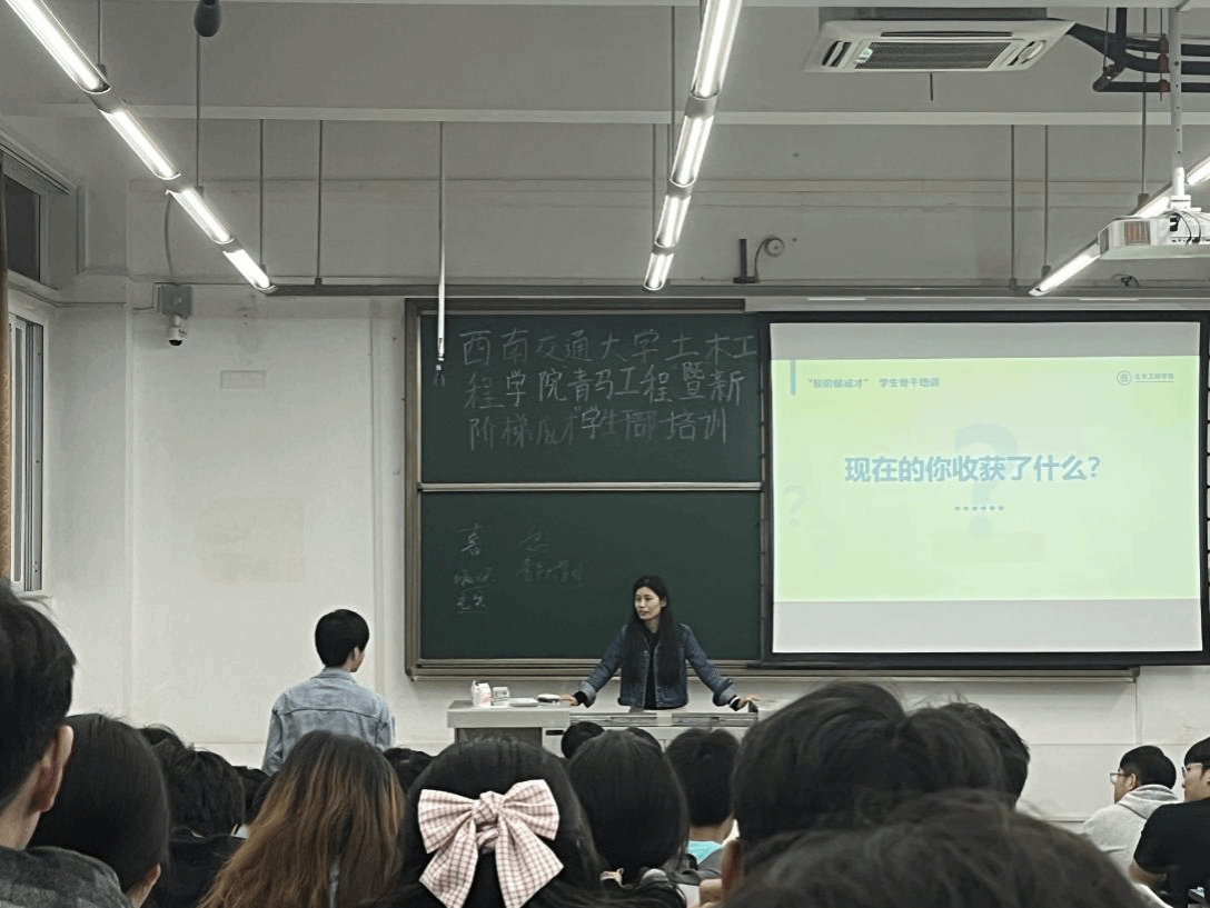 李江怀老师就如何做好一名班团干部为题,以实际案例为大家讲解了如何处理日常班级工作,提醒各位班团干部在今后的班团工作开展时,要先理解通知,梳理时间节点,公开公正的完成各项工作,并且及时的进行反馈。此外,还对班级班风学风建设、班级凝聚力建设做出了详细的讲解,讲解结束后根据同学们提出的各种问题做出了详细解答。
