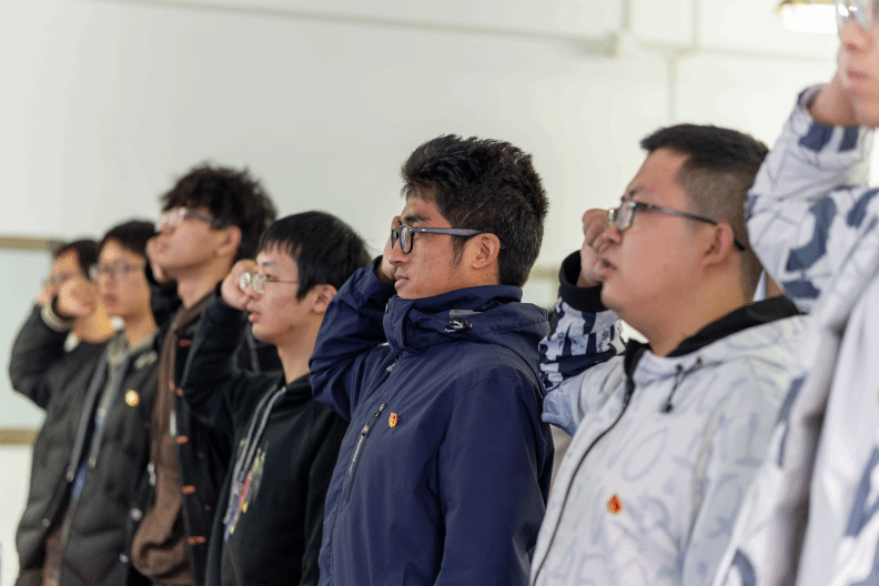 公司青年讲师团成员、辅导员杨颖钊老师总结大家自由讨论中提出的心得体会,带领同学们重温入团誓词,希望同学们始终牢记“请党放心,强国有我”的铮铮誓言。杨老师鼓励同学们积极投身中国式现代化的建设浪潮,自觉增强舍我其谁的责任感、时不我待的紧迫感,以奋斗姿态激扬青春,锐意进取、施展才华、不懈奋斗,勇于投身条件艰苦的基层、国家建设的一线、项目攻关的前沿,练就担当作为的硬脊梁、铁肩膀、真本事。