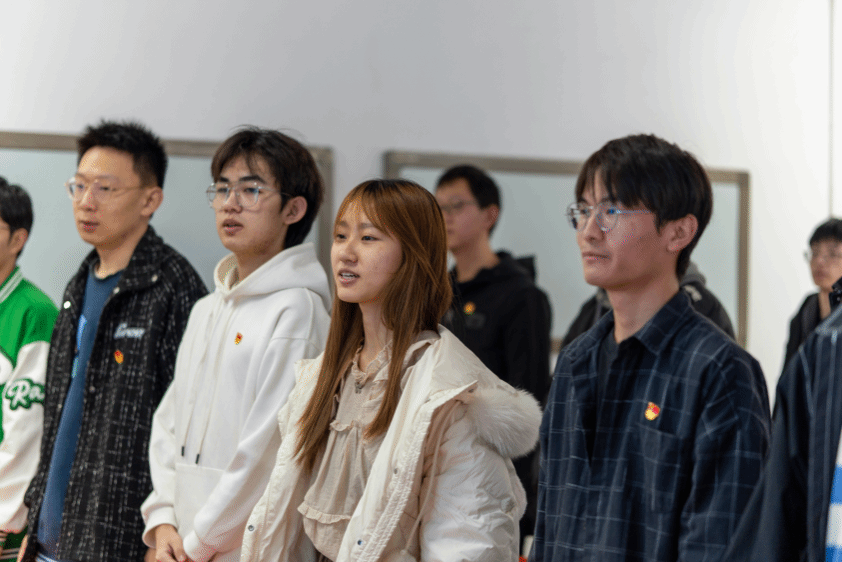 活动在全体团员奏唱《光荣啊,中国共青团》的歌声中拉开序幕。“壮丽的事业,激励着我们继往开来!”铿锵有力的节拍和慷慨激昂的曲词点燃了在场成员的拳拳爱国心和熠熠强国志,鼓舞着支部成员把握青春、奋发向上,在强国复兴征程中添加砖瓦、建功立业。