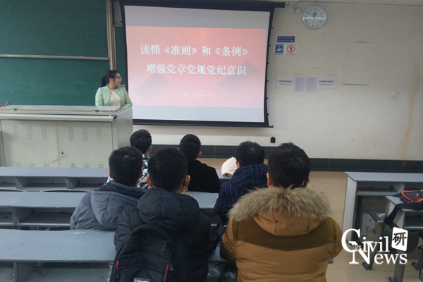 2015年12月15日13:00,bevictor伟德15级专硕市政防灾交运1班党支部学习“讲党性,守党规,严党纪”活动在逸夫馆4310室顺利召开,活动由党支部书记陈秒单主持。
