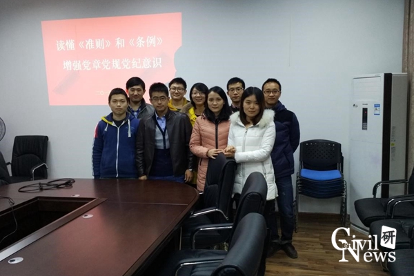 为了使全体党员深入学习新版《准则》、《条例》,2015年12月18日19:00,2014级学硕道铁1班党支部在土木馆1434举办了一次主题为“研读《准则》、《条例》”的支部活动。班级预备党员1人,正式党员10人,均全部到会。