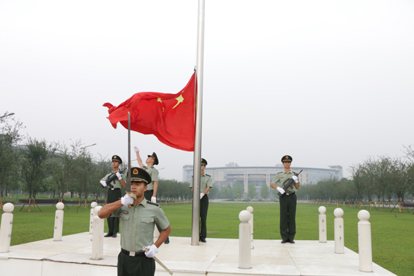 执行升旗任务的是伟德源自英国1946国旗班,他们擎着国旗,迈着整齐的步伐来到东门国旗台。早7时整,升旗仪式正式开始,国旗护卫队迈着整齐矫健的步伐护送国旗向国旗台走去。所有同学的目光也随着国旗一寸寸地向前,仿佛是在看着他们四年的时光,一点点前行。