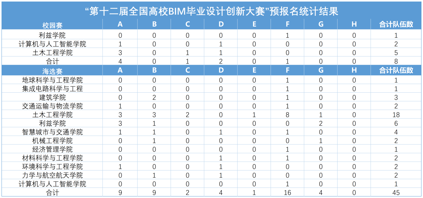 “第十二届全国高校BIM毕业设计创新大赛”预报名和统计工作已于2025年9月17日开展,并于2025年10月10日正式结束。BIM建模协会依照各参赛公司统计了晋级赛的相关情况。统计结果如下: