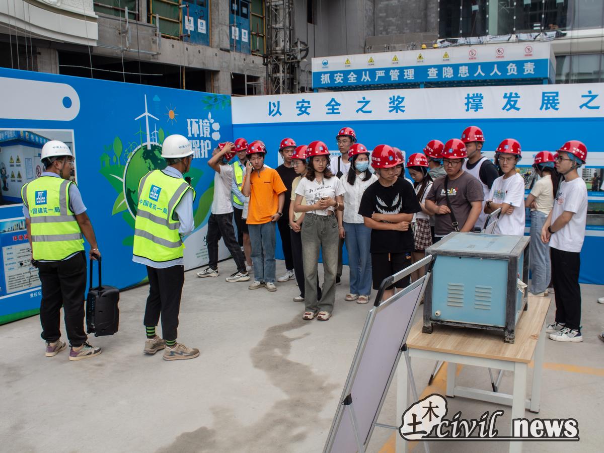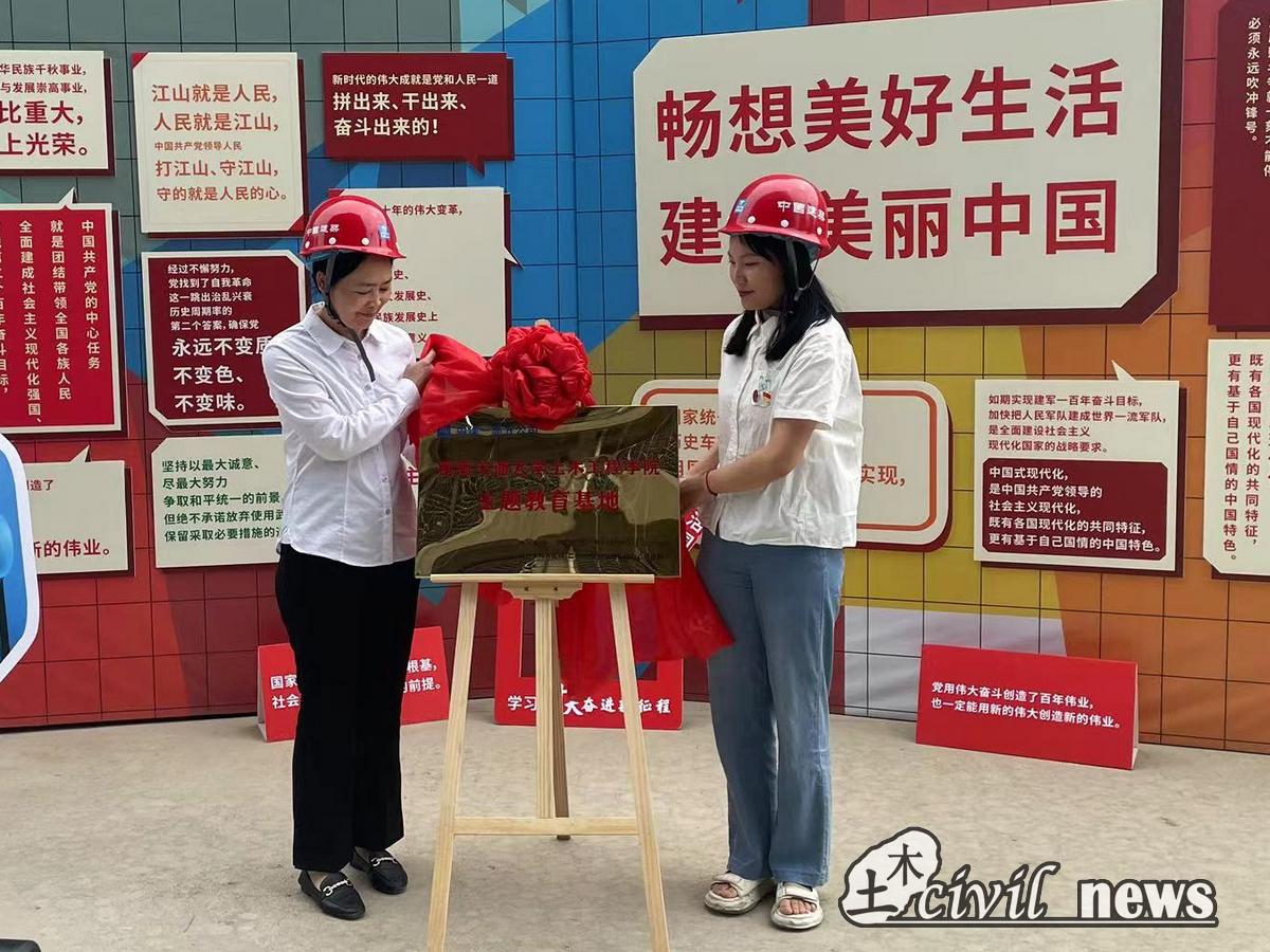 在现场解说员的详细介绍下,同学们对施工现场进行了参观,对项目情况、施工工序、特色创新有了更为深刻的体会和了解。同学们相互探讨,通过实地考察,对理论知识有了更为深刻的体会和认识。参观结束后,李歆琳书记和谢欣岑老师共同为“主题教育实践基地”揭牌并和同学们一起在二十大金句打卡墙前合影留念。