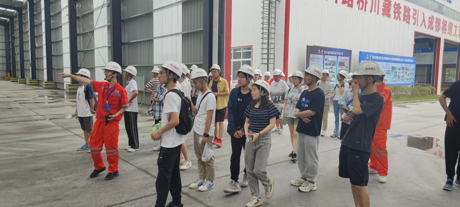 首先同学们坐车到达了川藏铁路引入成都枢纽工程指挥部,指挥部工作人员热情接待了同学们,并为同学们讲解了进入施工场地的相关注意事项并且演示和配发了安全帽。