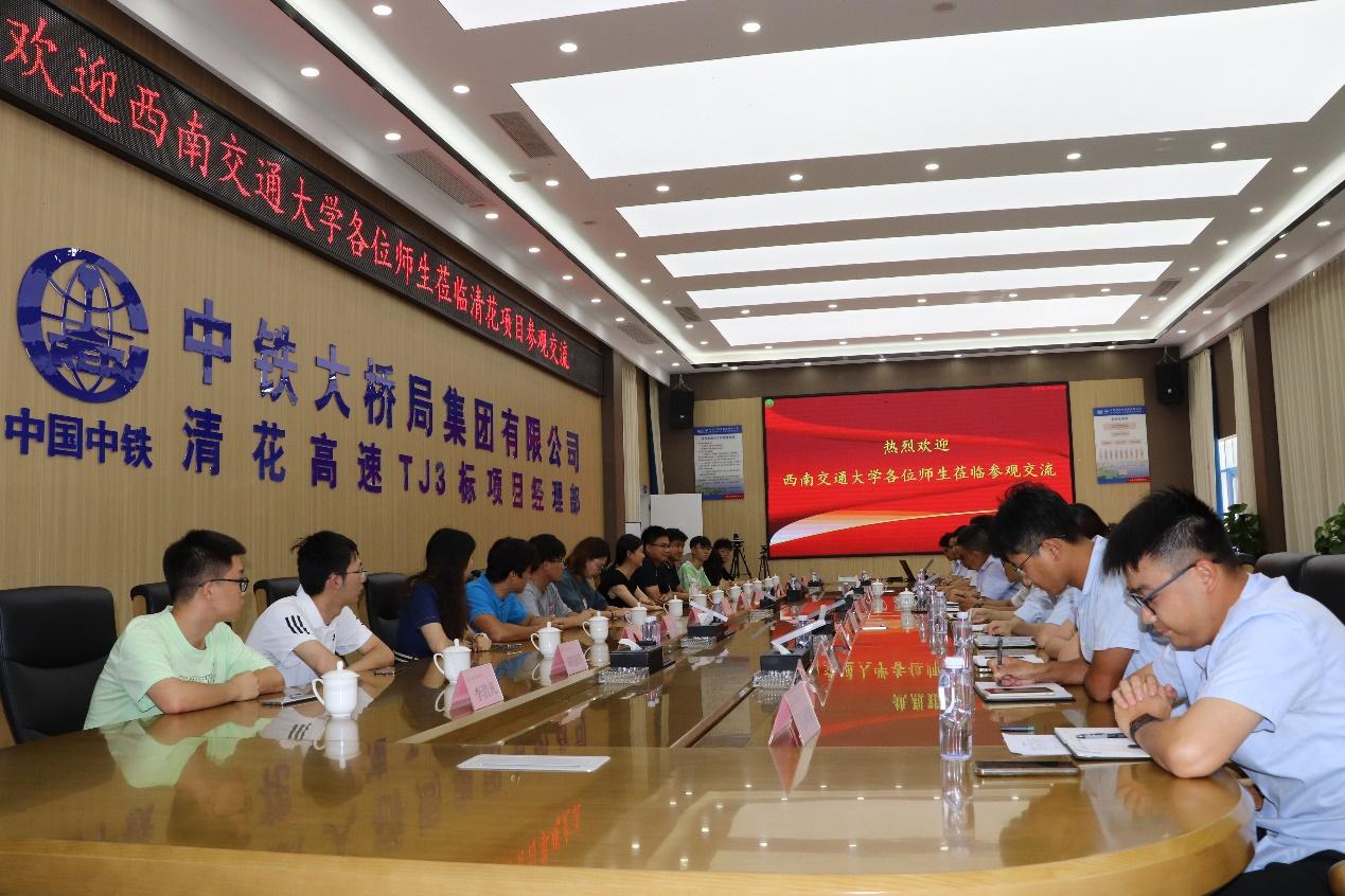8月25日下午,队伍前往大桥局九公司清远市项目参观。到达项目部后,受到大桥局九公司的热情接待。随后,队伍前往会议室,和项目管理人员和多位技术工作人员进行座谈交流。李裕、李曦分别介绍了公司人才培养、科学研究的进展成果,并就双方进一步开展实习生实践锻炼、校园招聘合作等进行了交流洽谈,为实现双方供需对接、合作共赢奠定了良好基础。