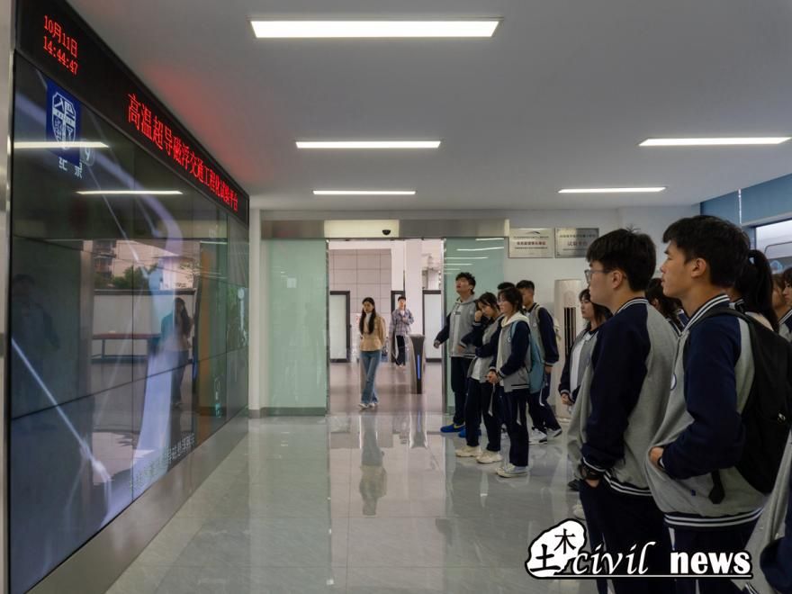 参观了高温超导磁悬浮列车试验线之后,成都市实验外国语公司全体师生前往轨道交通运载系统全国重点实验室进行参观。讲解老师重点介绍了高速铁路线路结构动态性能试验台,该试验台是目前世界上高铁轨道种类最齐全的全尺寸试验台可用于研究轨道结构部件损伤劣化机理、轨道结构动力学性能等等。讲解老师用生动形象的语言讲解机械性运转的机器,同学们边听边看,一路上有问有答,有说有笑。