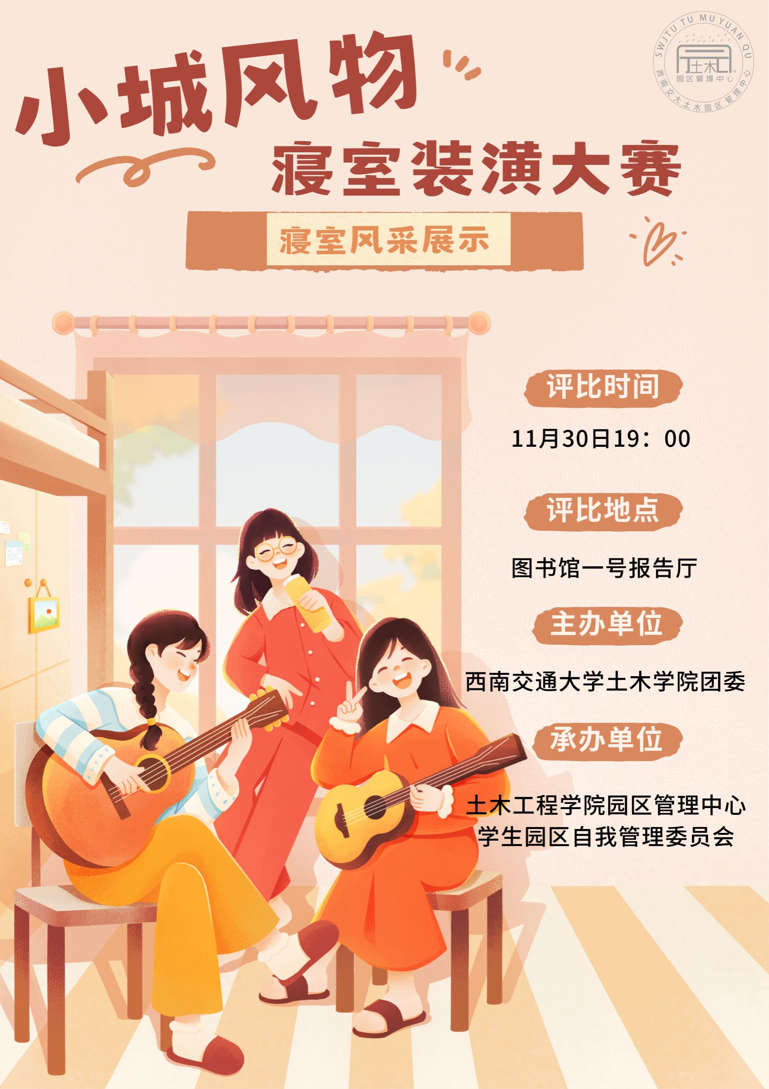 由土木园区管理中心承办的寝室装潢大赛决赛将于11月30日(周四)19:00在图书馆1号报告厅举行,欢迎各位同学到场观赛!