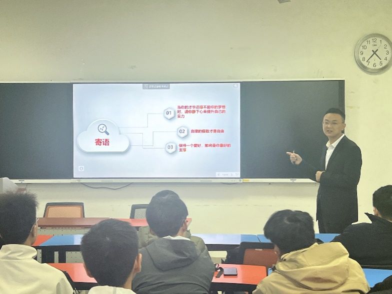 李亮导师从中建七局西南公司四川分公司组织架构、业务类型、人才建设等方面向同学们进行介绍。他表示,未来企业将会尽力为同学们提供更多现场观摩和实习的机会,鼓励大家做好课题研究和未来职业生涯规划。李亮导师回忆起自己在交大土木的四年生活,“正是在公司里认真学习和做员工工作的经历,让我现在能在这里和大家进行交流。”李亮导师指出,同学们在大一时应有阶段性的目标,规划好自己的时间,过好“有痕迹、有意义”的大学四年。同时,李亮导师希望今后能够和同学们多交流、勤沟通,建立有师生情、朋友情的紧密融洽关系。