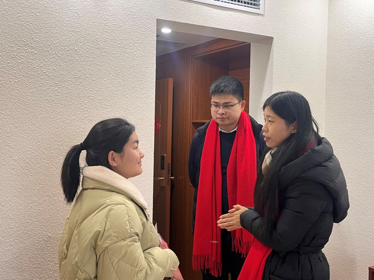 为做好寒假期间留校员工生活保障工作,加强对留校员工的关怀和帮助,营造美好的节日氛围,2月2日上午10:00,学工组副组长刘萍、辅导员张进、李裕、李阳阳、谭力豪、彭畅宇一行走访慰问留校员工,为留校员工送去新春祝福。