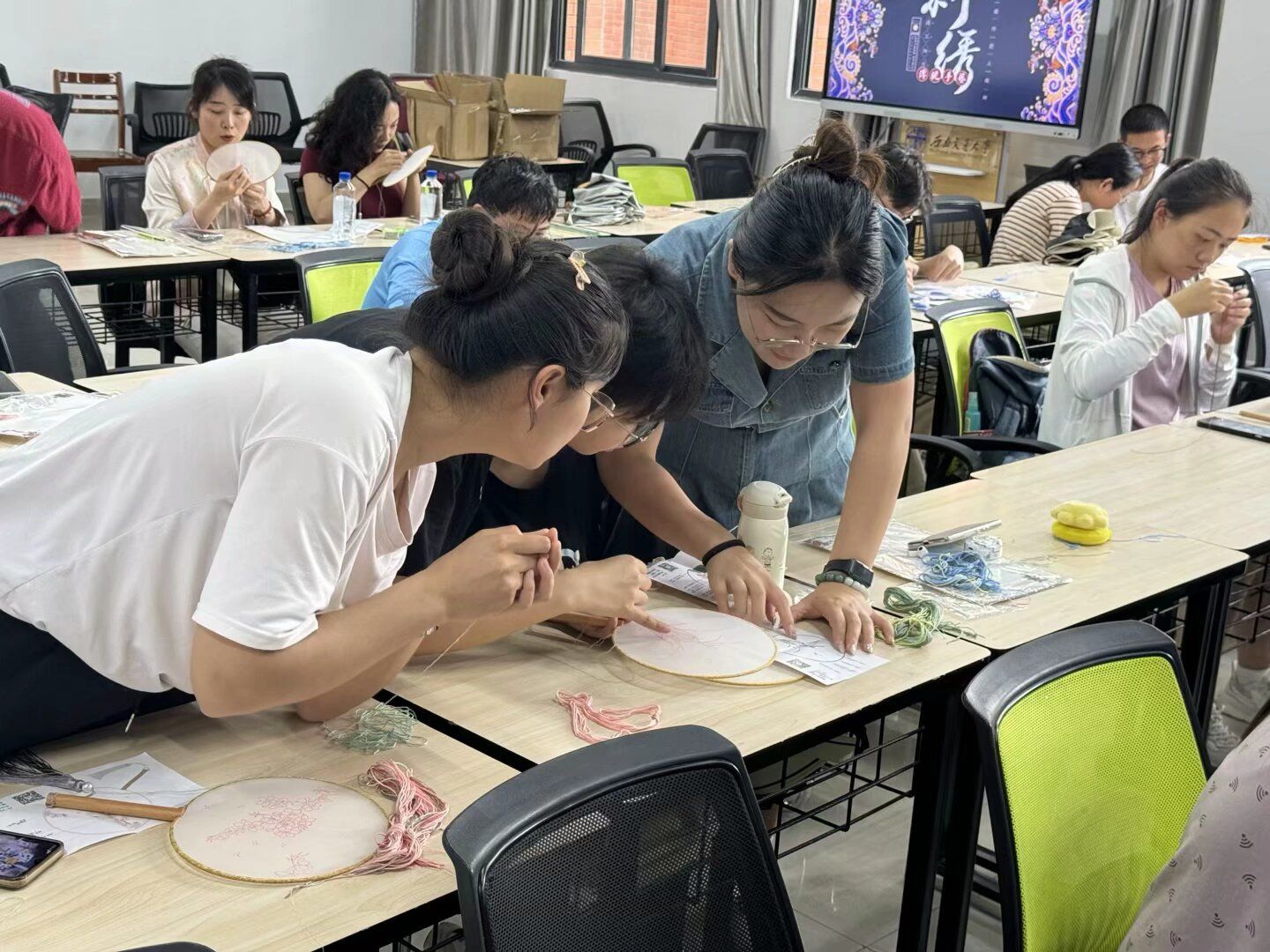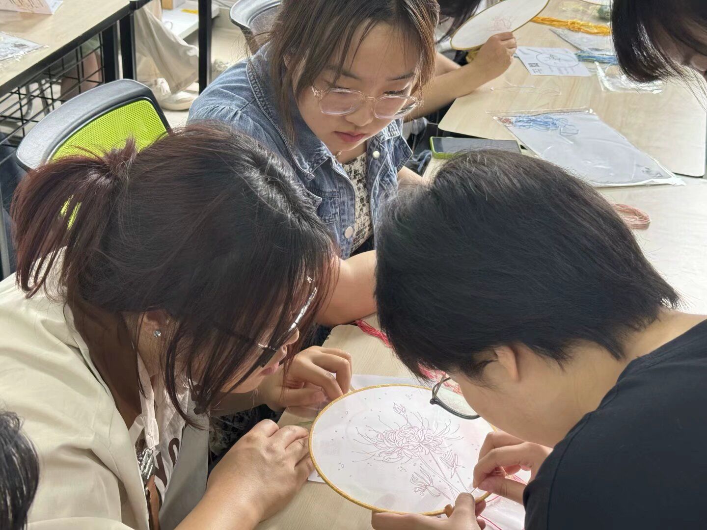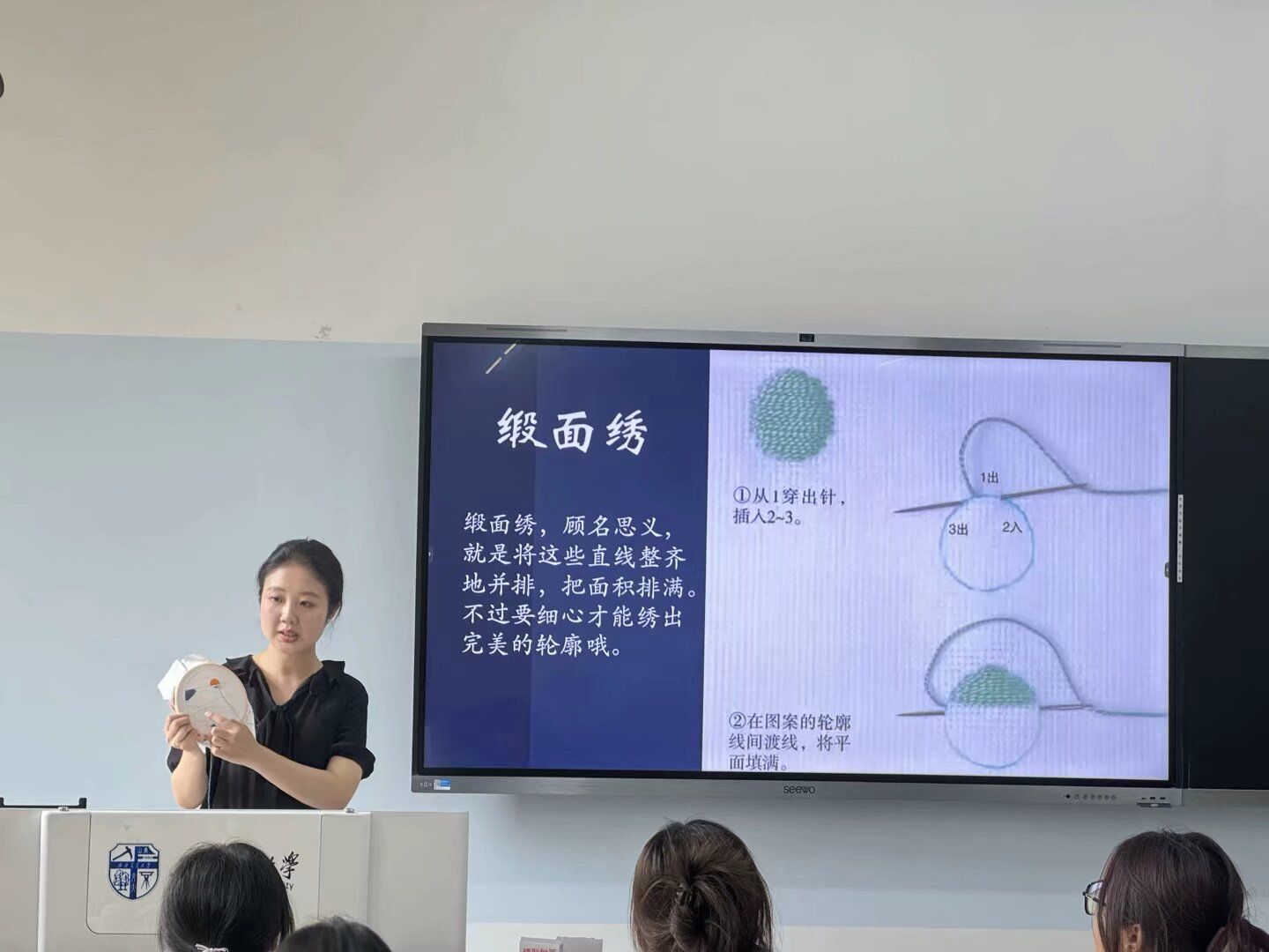 在体验活动中,同学们专注的刺绣,老师耐心地予以指导,让同学们在轻松愉快的氛围中学习,进一步激发了他们对传统文化的兴趣和热爱。