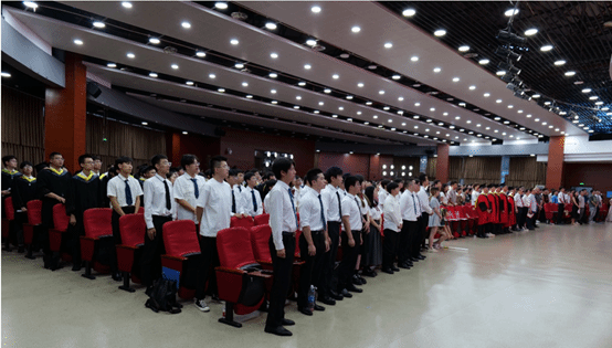 最后,全体起立,奏唱校歌。用歌声表达对母校的深深眷恋和美好祝愿,在文轨车书郅大同的激昂合唱中,毕业典礼圆满礼成。祝愿毕业生们扬帆沧海,逐梦山河,以无畏之姿,启航向未来!