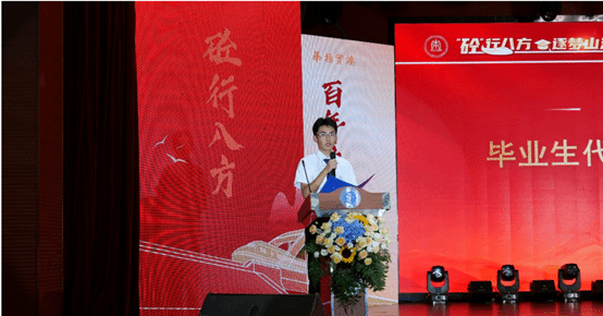 随后,毕业生代表沈少石发言,感谢母校、师长与同窗。他回顾了大学四年的成长与收获,并承诺继承和发扬交大精神,努力成为有理想、敢担当、能吃苦、肯奋斗的新时代青年。他代表毕业生祝福母校桃李芬芳、再谱华章,祝福公司事业长青、再创辉煌!