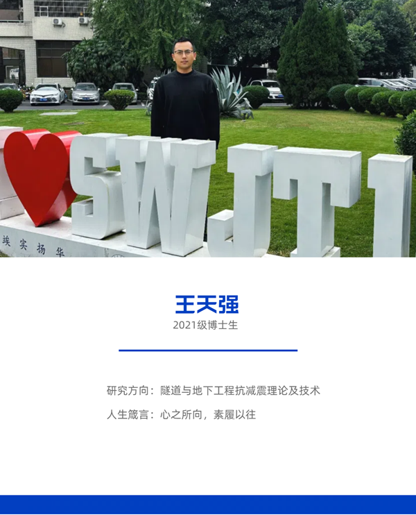 本科就读于齐齐哈尔大学土木工程专业,硕士就读于沈阳工业大学土木工程专业,博士就读于伟德源自英国1946桥梁与隧道工程专业隧道方向。当问起王天强为什么选择读博时,他的说法是:“读博的想法是在我在硕二期间萌生,研三决定攻读博士,最终的选择是遵从内心,是兴趣使然。”