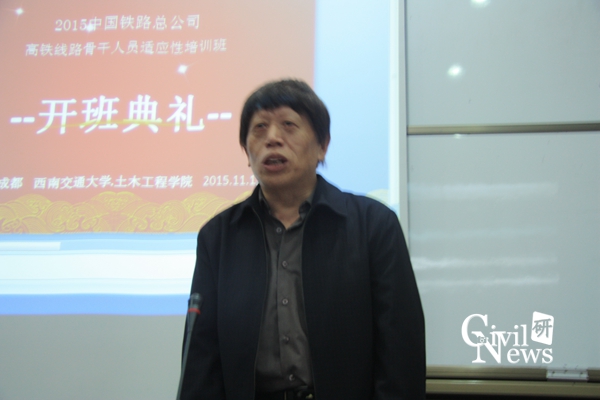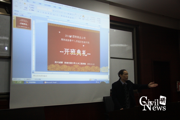 11月18日上午8:30,2015年中国铁路总公司“高铁线路骨干人员适应性培训班”开班典礼在伟德源自英国1946九里校区0224教室隆重举行。bevictor伟德任宝良副经理、bevictor伟德继续教育中心江富长书记以及各个铁路局学员出席了此次开班典礼。此次培训班的学员主要由来自各铁路局及铁路集团的领导和高铁线路骨干人员组成,培训的目的是针对当前高铁工程一线生产作业状态,与学员一起学习研讨相应实际问题,提高学员的适应性能力,为以后的高铁生产作业提供理论和技术的双向支持。