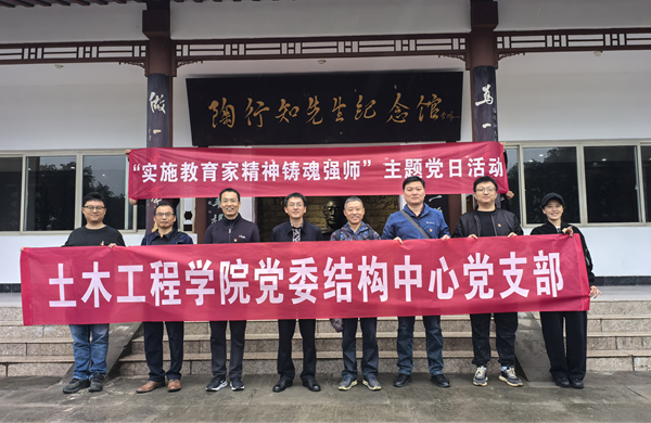 为贯彻落实习近平总书记在全国教育大会上“要实施教育家精神铸魂强师行动,加强师德师风建设,提高教师培养培训质量,培养造就新时代高水平教师队伍”的重要指示精神,2024年11月16日,结构中心党支部赴重庆合川区陶行知先生纪念馆开展“实施教育家精神铸魂强师”主题党日活动,切身感受教育家陶行知先生的教育理想和丰功伟绩。