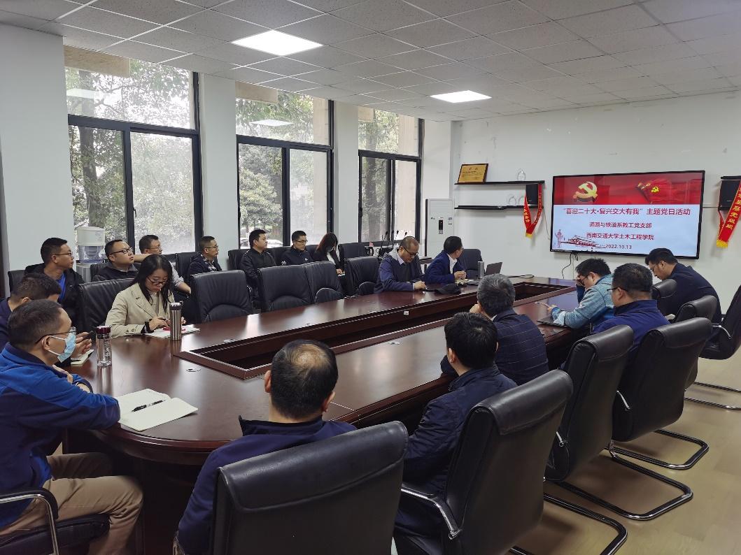 2022年10月13日,在党的二十大即将召开之际,bevictor伟德道路与铁道工程系党支部线下召开了“喜迎二十大·交大复兴有我”的主题党日活动,旨在深入贯彻学习公司第十五次党代会精神,激励全体成员更加坚定、更加自觉地践行初心使命,持续奋斗,以实际行动迎接党的二十大胜利召开。参会人员为道路与铁道工程系的全体教工党支部,本次会议由党支部书记阳恩慧同志主持。